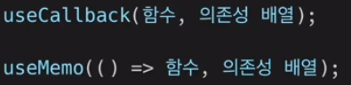 - 컴포넌트가 렌더링 될 때마다 매번 함수를 새로 정의하는 것이 아니라, 의존성 배열의 값이 바뀐 경우에만 함수를 새로 정의해서 리턴해 줌