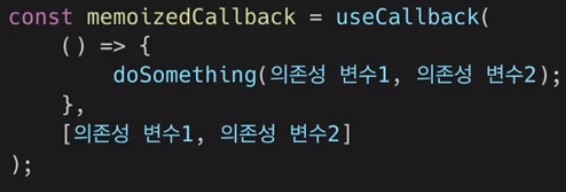 - 의존성 변수가 하나라도 변경되면 메모이제이션된 함수를 반환함