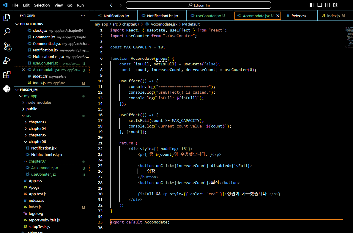 - Hook인지 모른다면 Hook의 규칙 위반 여부를 자동으로 확인할 수 없다. - 여러 개의 컴포넌트에서 하나의 Custom Hook을 사용할 때, 컴포넌트 내부에 있는 모든 state와 effect는 전부 분리되어 있다.