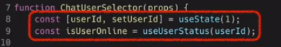 userID 변경 -> useUserStatus(userID) 변경 (다른 데이터 반환)