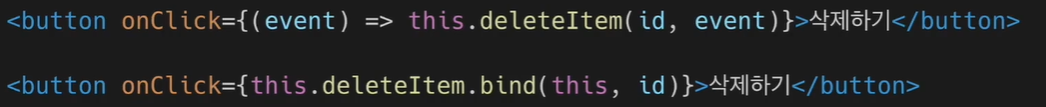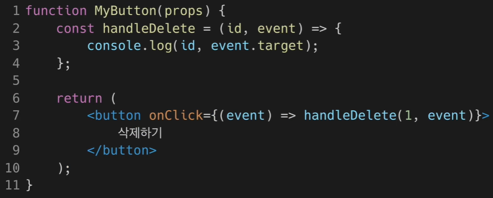 함수 컴포넌트에서는 이벤트 핸들러에 매개변수를 전달할 때 위와 같이 함