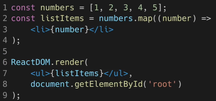 - NumberList 컴포넌트는 props로 숫자가 들어가 있는 배열인 numbers를 받아서 이를 목록으로 출력함