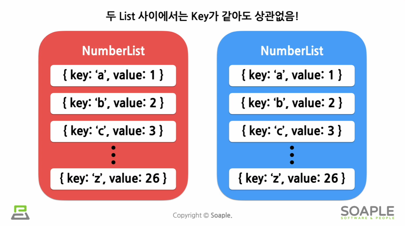 - Key의 값은 같은 List에 있는 Elements 사이에서만 고유한 값이면 된다.