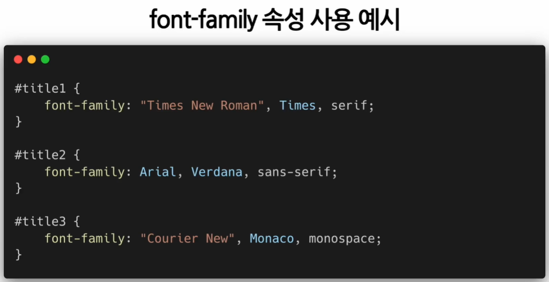 - 사용할 글꼴이 콤마로 구분되어 여러 개의 글꼴이 쓰여 있음