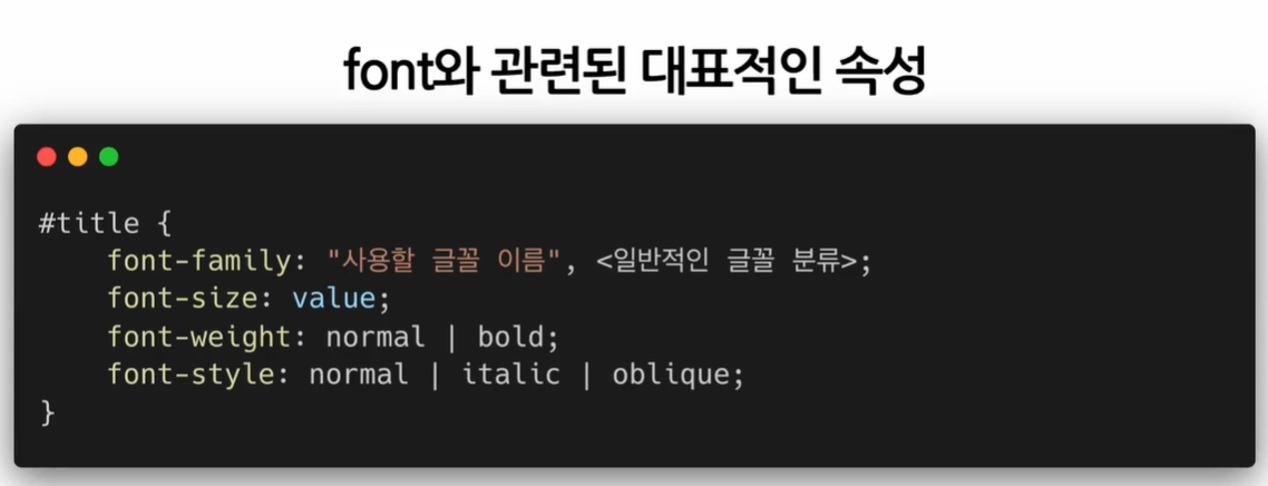 - 어떤 글꼴을 사용할 것인지를 결정하는 속성