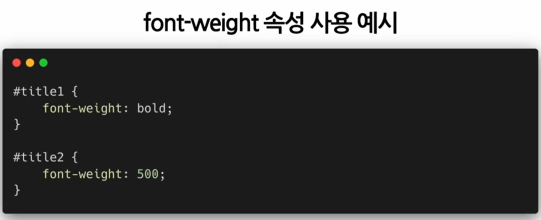 - 100~900까지의 100 단위의 숫자로 된 값을 사용(숫자가 클수록 두께가 두꺼워짐)