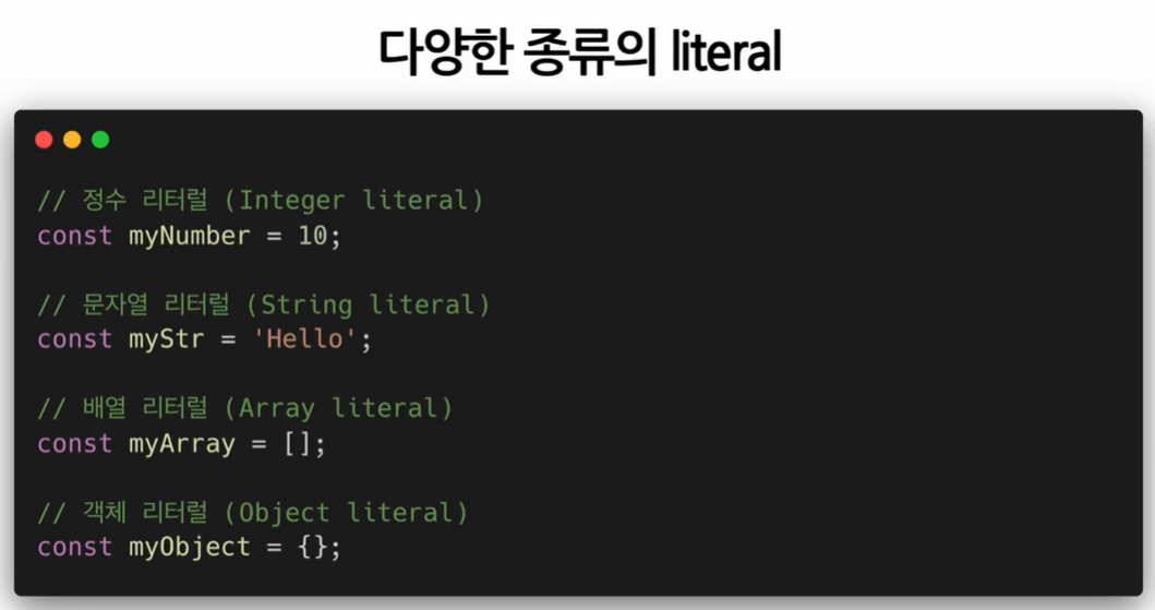 -> 대입 연산자의 오른쪽에 있는 것들이 리터럴이 된다.