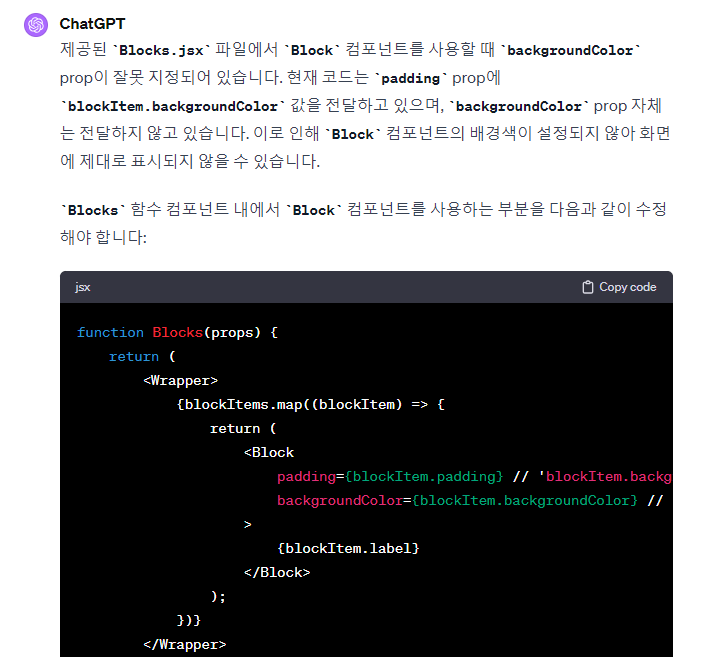 - styled 컴포넌트를 사용하는 부분의 CSS 속성을 보면 내부에 props가 사용된 것을 볼 수 있음