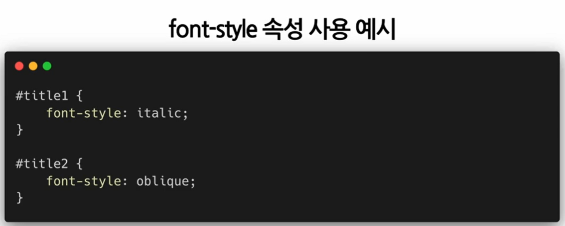 - 해당 글꼴이 italic을 지원하는지를 확인한 뒤에 사용해야 함 - oblique