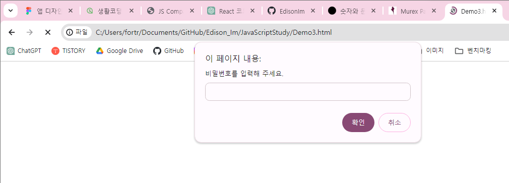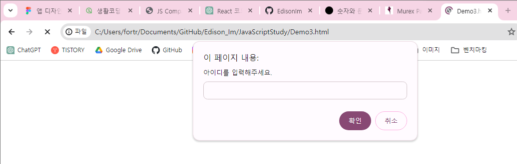 prompt : 입력창을 통해 상대방의 값을 받아낼 수 있는 명령어