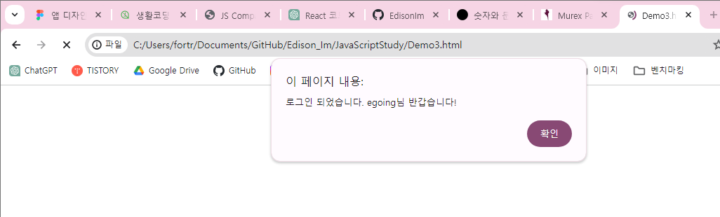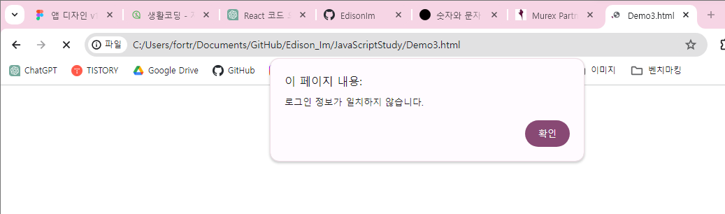 - true면 alert를 띄우고, false면 아무 일도 일어나지 않음