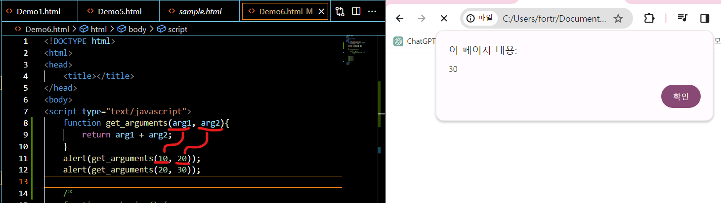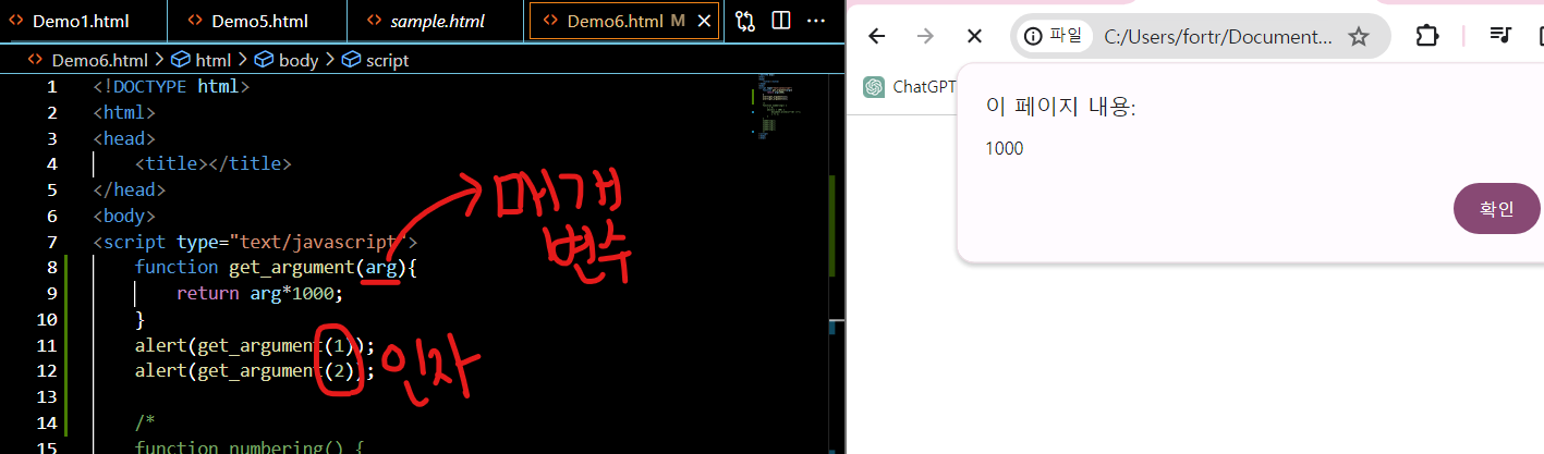 값 : 인자, argument
