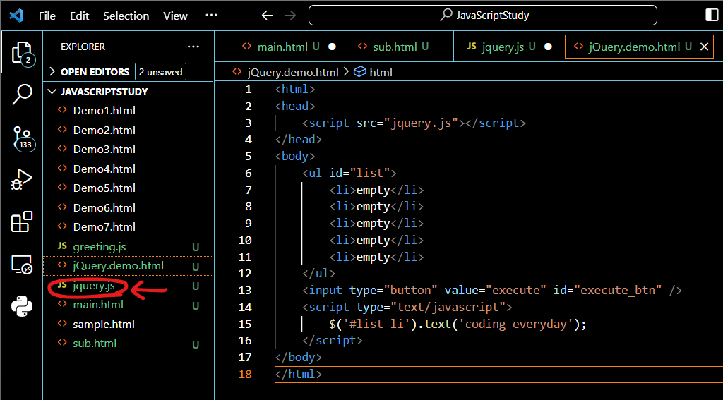 jQuery.demo.html 파일을 만들고 파일을 넣는다.