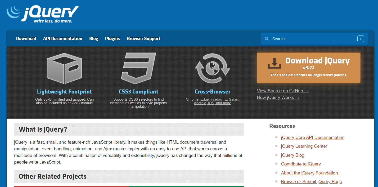 jQuery is a fast, small, and feature-rich JavaScript library. It makes things like HTML document traversal and manipulation, event handling, animation, and Ajax much simpler with an easy-to-use API that works across a multitude of browsers. If you're new t