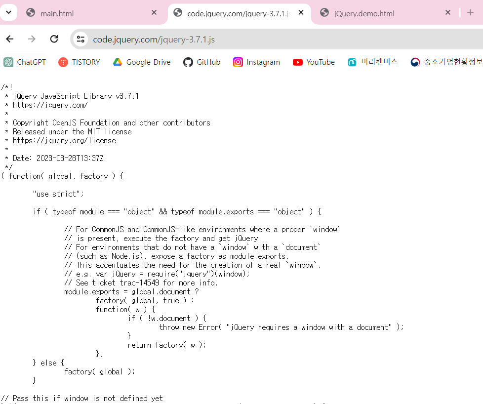 jquery.js 파일을 만들고 라이브러리를 붙여 넣는다.