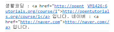 var content = '생활코딩 : http://opentutorials.org/course/1 입니다. 네이버 : http://naver.com 입니다. ';