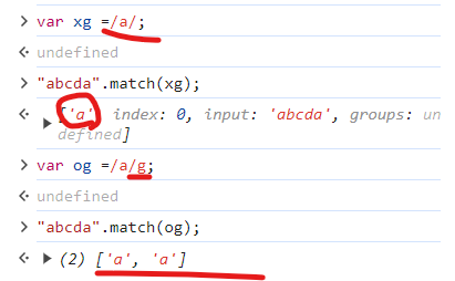 "abcda".match(xg);