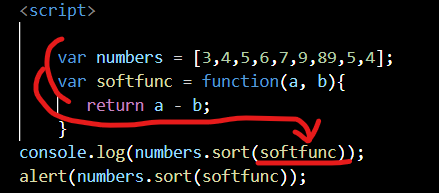 alert(numbers.sort(softfunc));