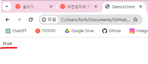 탐색의 결과, true의 값을 얻음