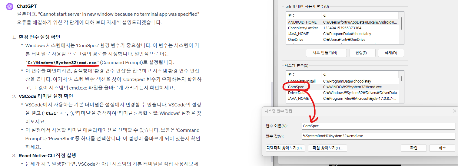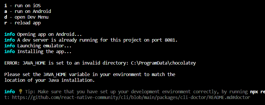 문제는 지금 npm run android가 안된다는 것이다.