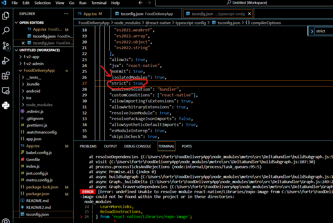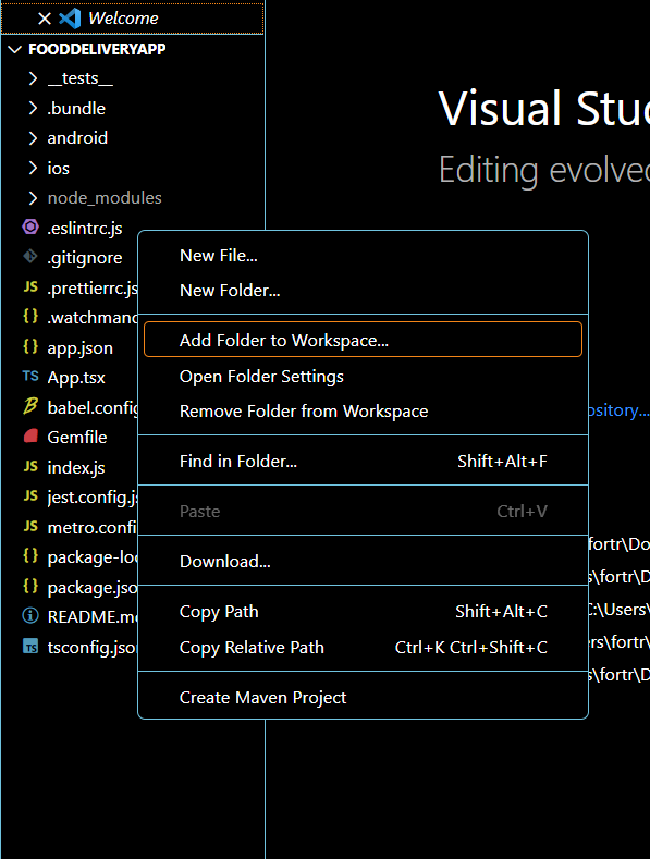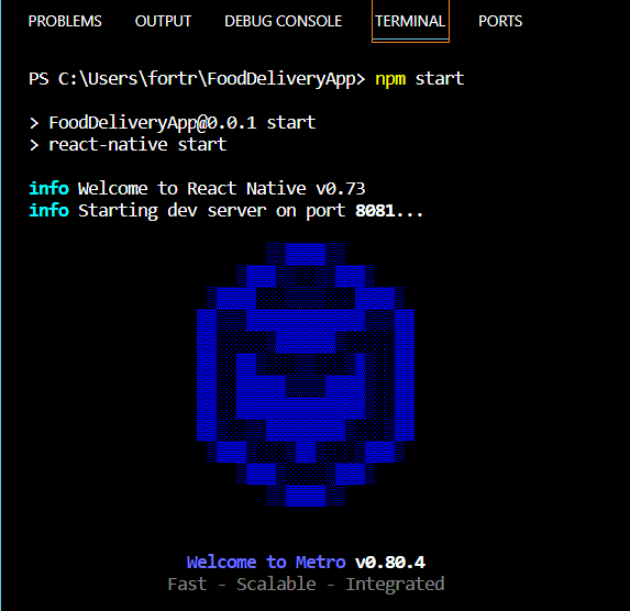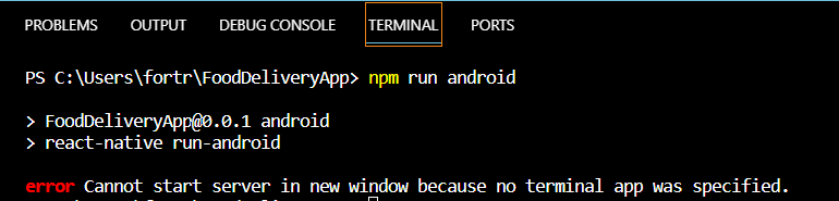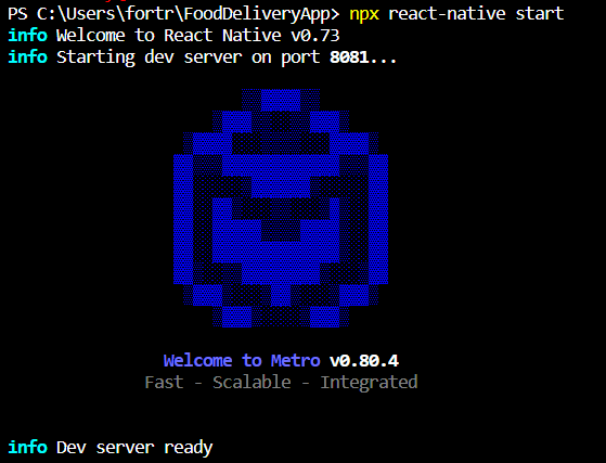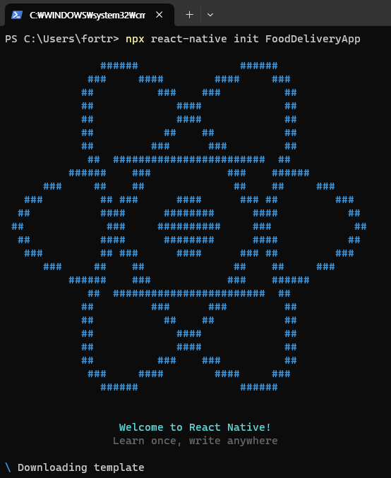 실행 : npx react-native init FoodDeliveryApp