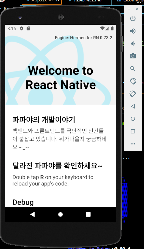 그리고 명령어를 npx react-native start로 해본다.