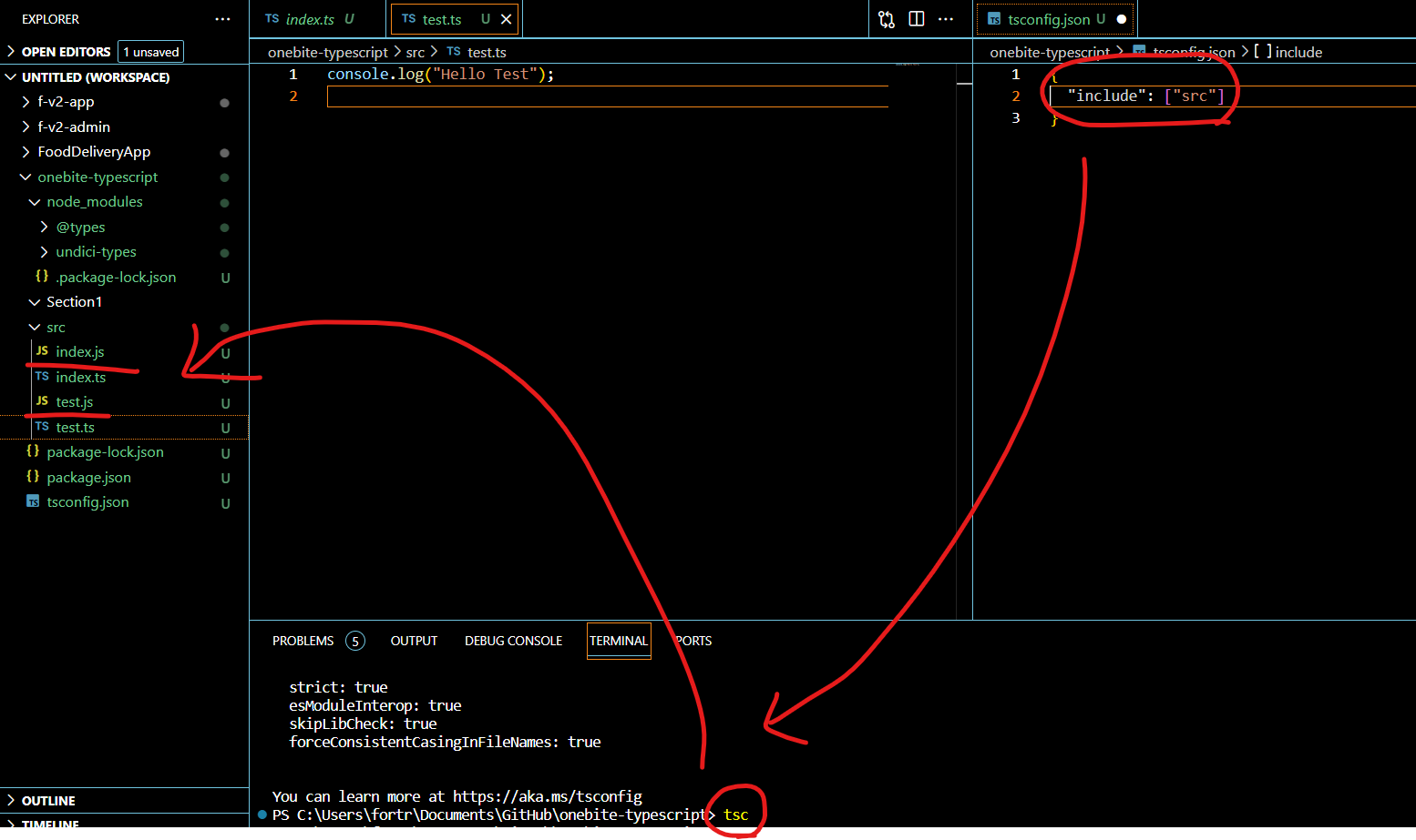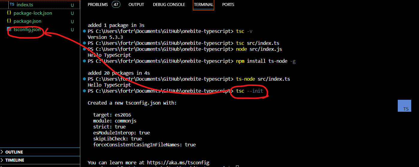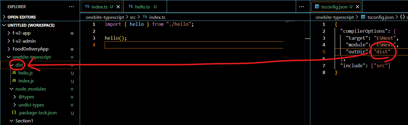 ts 파일을 만들어주고 tsc src/index.ts