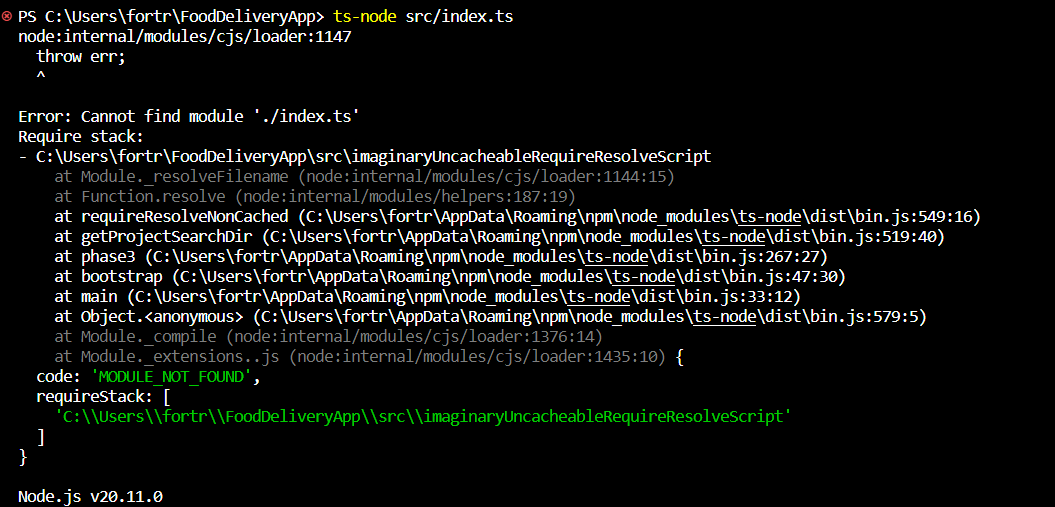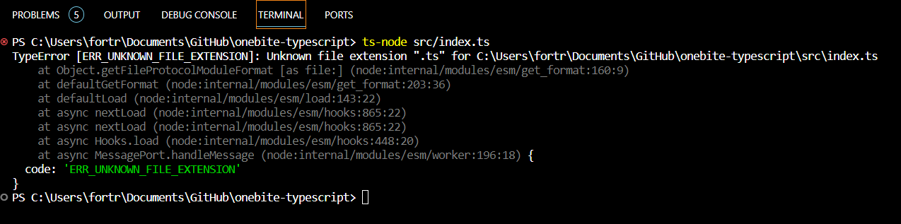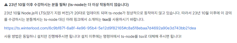 그러다가 위에서 ts-node는 더 이상 동작하지 않는다는 내용이 기억났다(위쪽 참고).