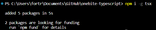 그래서 해당 홈페이지로 허겁지겁 들어가서 npm i -g tsx를 설치했다.