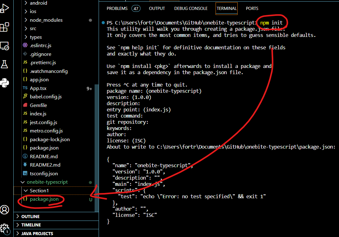 그리고 엔터 쭉 치면 package.json이 생긴다.