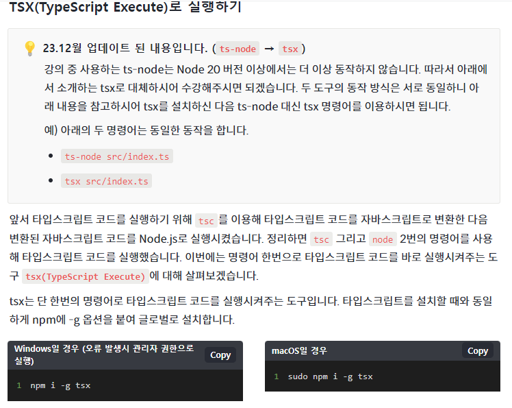 명령어 : npm i -g tsx