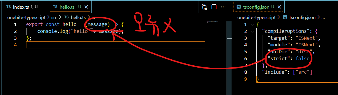 위의 message는 type이 결정되지 않아서 strict true의 경우 오류라고 인식함.