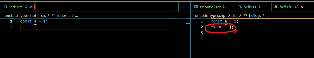 tsc를 실행하면 js에 알아서 export { }를 넣어 놓음