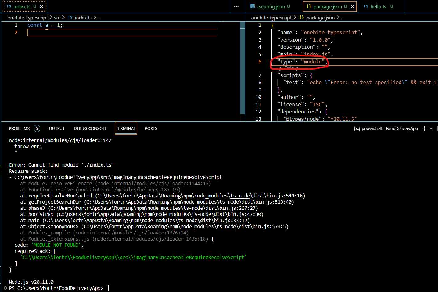 ts node가 esm module을 이해할 수 없음
