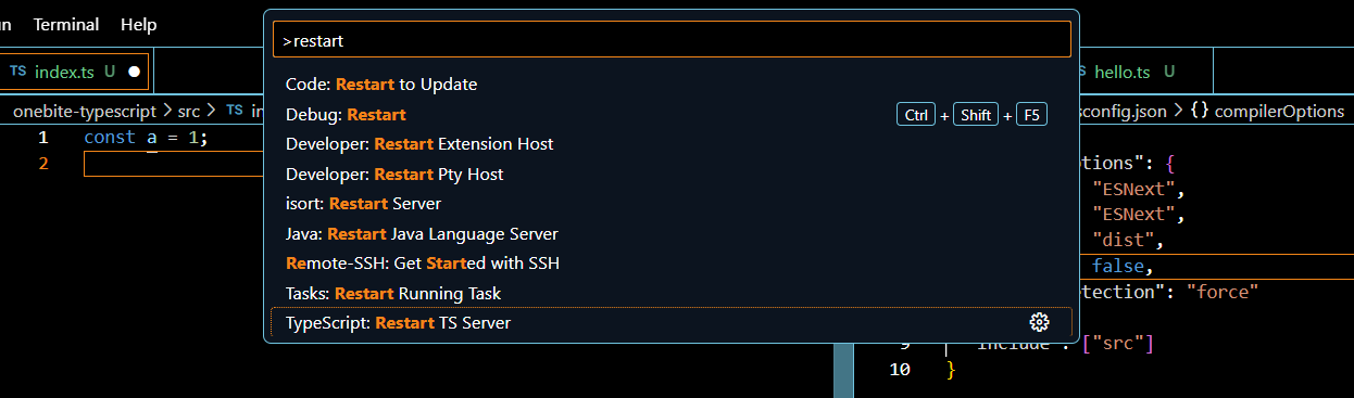 그랬는데 적용 안되면 ctrl+shift+p 한 뒤에 restart - TS 서버 다시 시작
