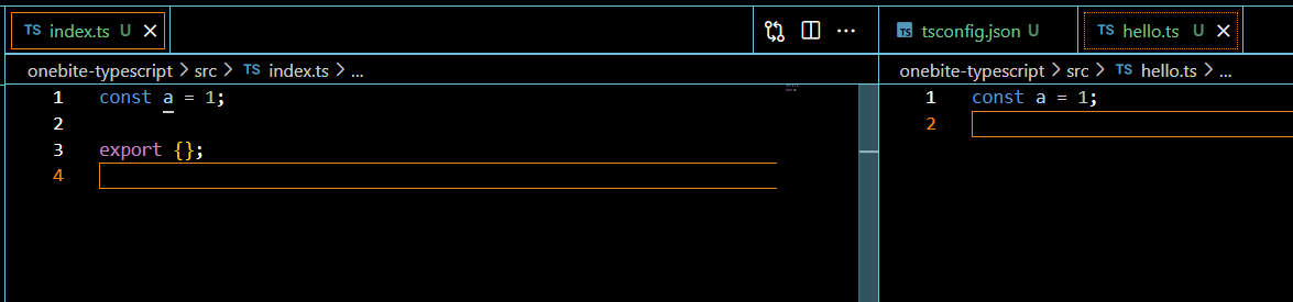 export 같은 모듈 키워드를 한 번이라도 쓰면, 해당 파일은 독립된 공간으로 본다.