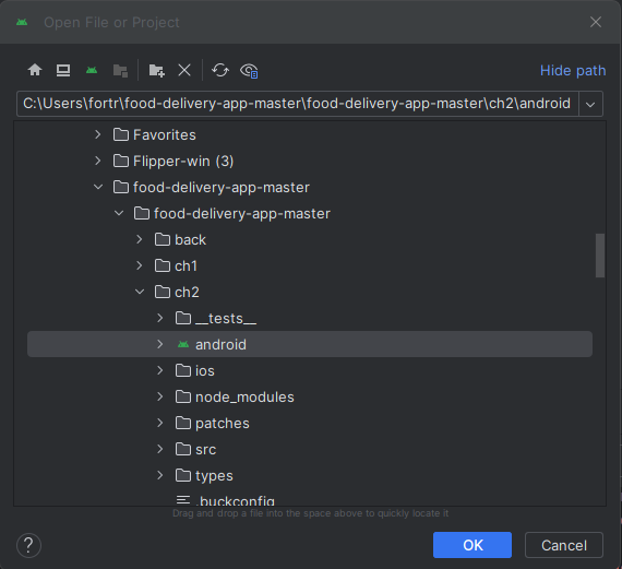 android studio > File > Open > 해당 프로젝트의 android 폴더