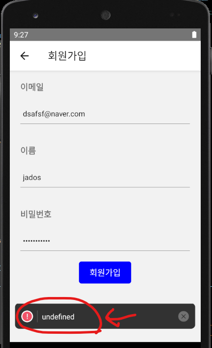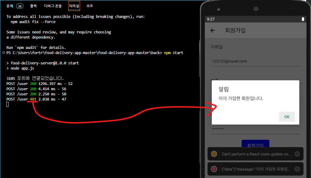 axios 설치 후에는 npm package기 때문에 run-android를 다시 해야 한다.