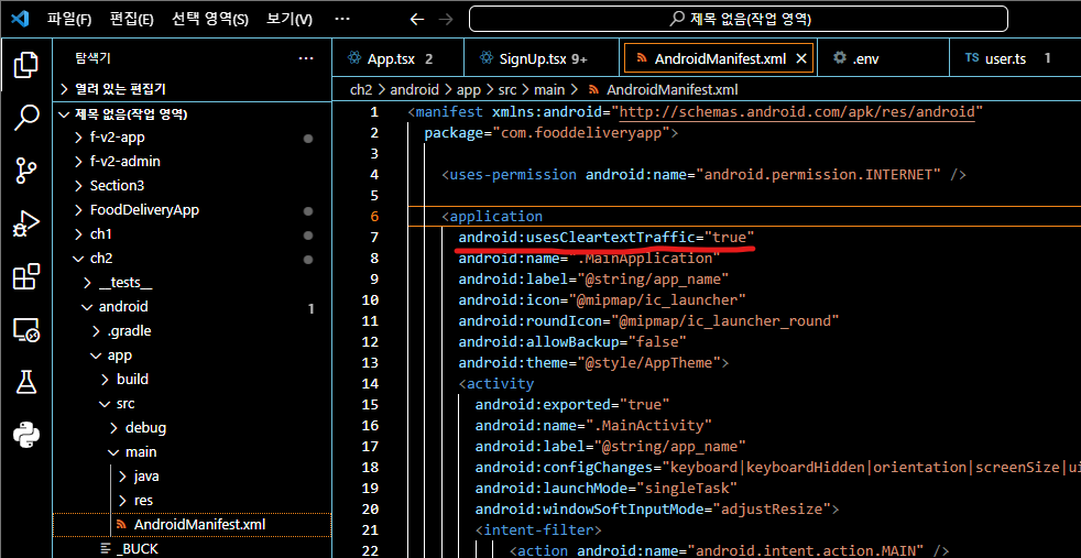 이걸 넣으면 android에서 http도 허용한다.