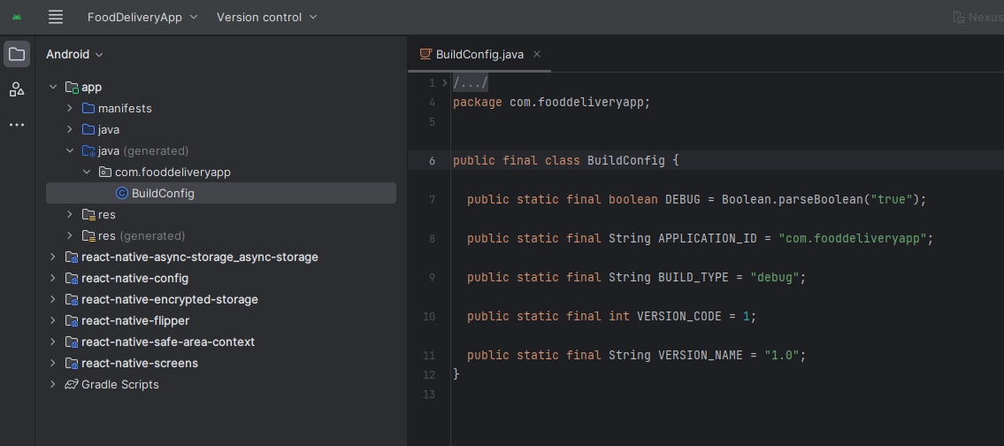 java(generated)>com.fooddeliveryapp> BuildConfig
