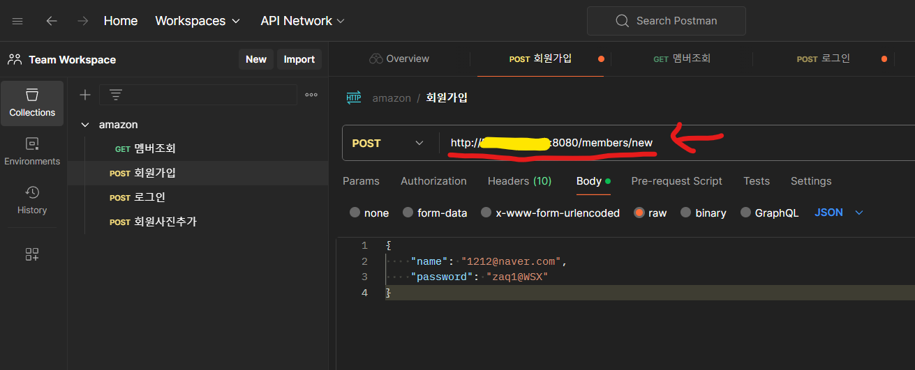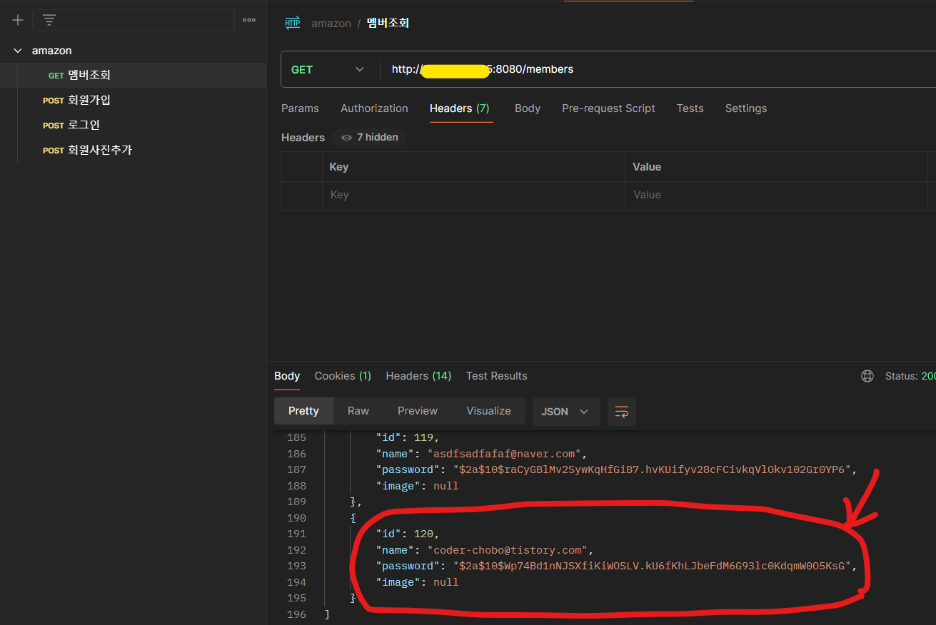 3. Postman 회원가입(POST) IP주소 확인