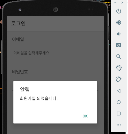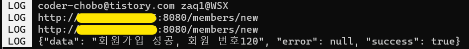 회원가입이 완료되면 로그를 확인한다.