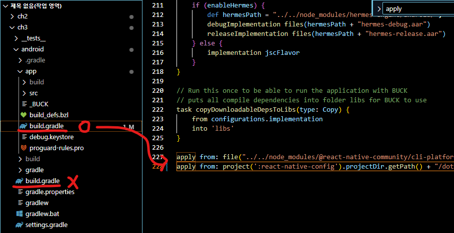 루트 디렉토리\android\app/build.gradle의 파일을 선택한다.