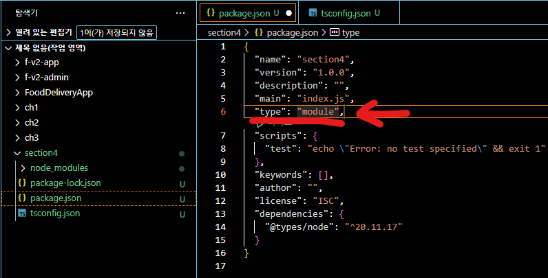 package.json 에서 type 추가