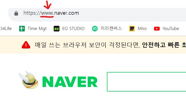 웹은 World Wide Web의 약자로 우리가 인터넷에서 주소를 입력할 때 첫 부분에 주로 쓰인다.